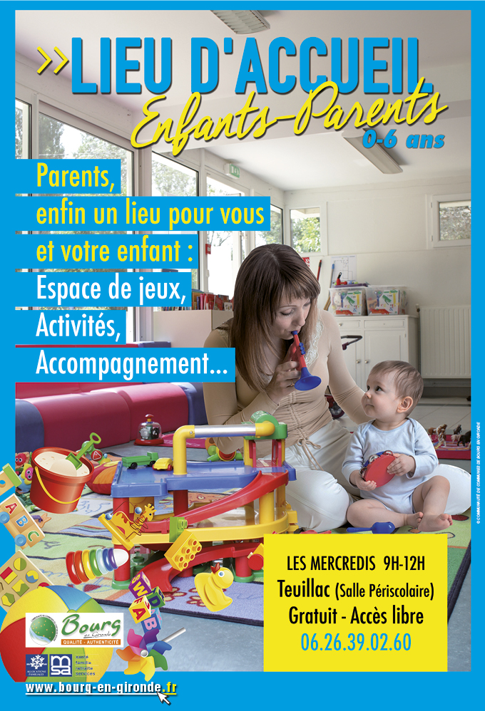 >> LIEU D’ACCUEIL ENFANTS-PARENTS ? Il vous sera proposé un espace de jeux pour les 0-6 ans. Le parent reste avec son enfant et sera reçu par deux accueillantes professionnelles de l’enfance et de la famille.